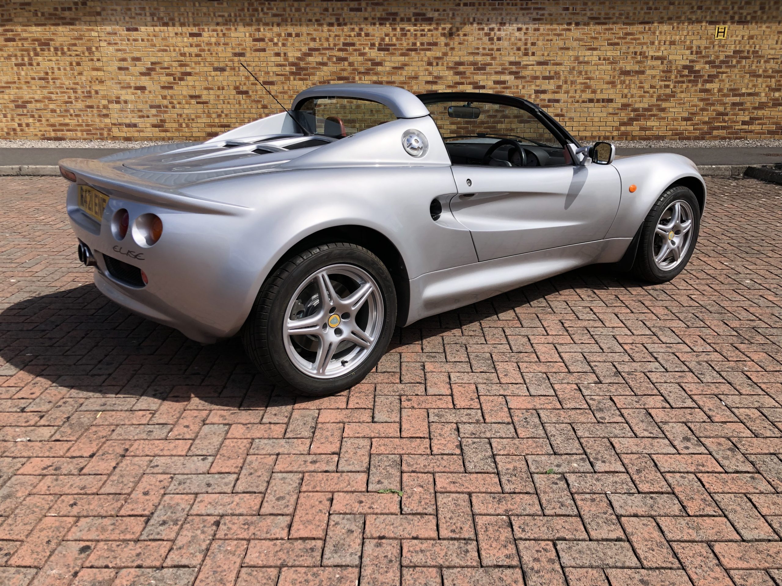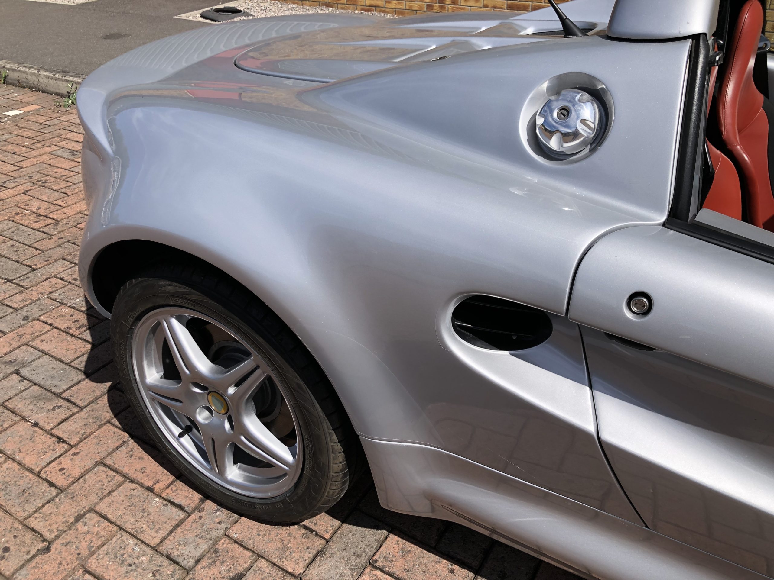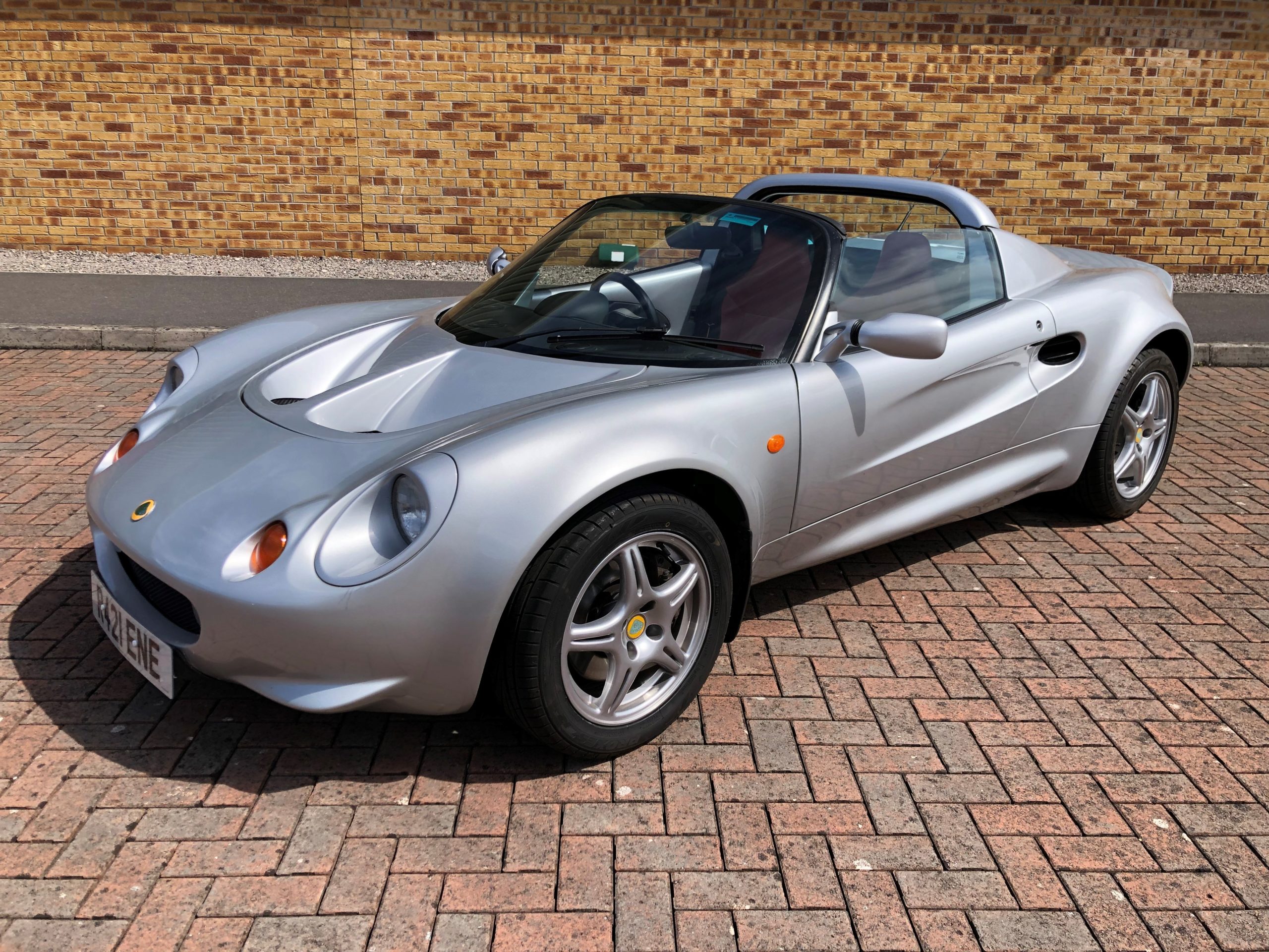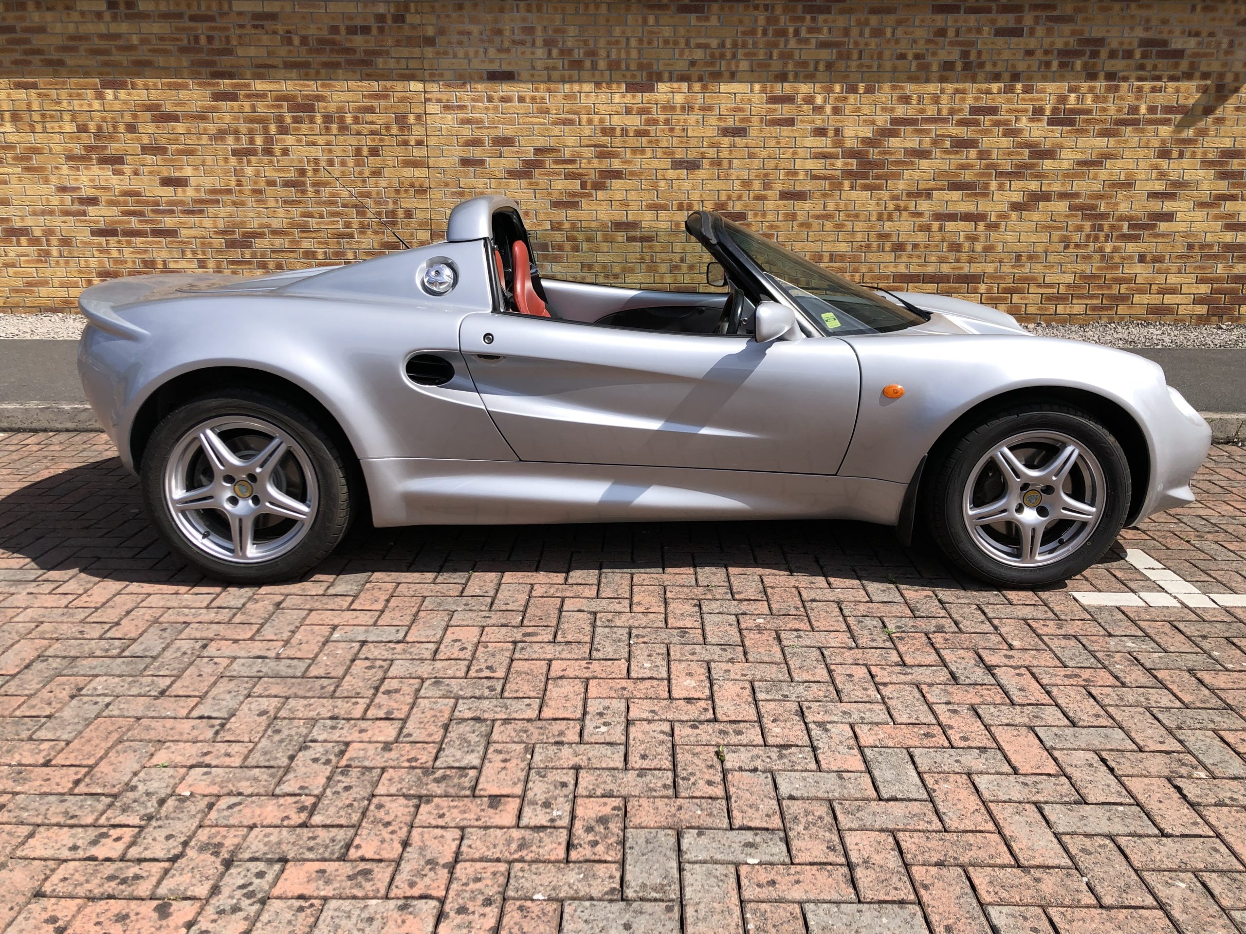 Lotus Elise S1 in silver with red convertible roof and red and black interior. The Elise has covered 70k miles and has mot until 10th July 2025. It has 3 previous keepers with extensive service history with recommissioning work carried out at Esprit Engineering which recently included the installation of a motorsport double core aluminium radiator and new Spal radiator fan. It has had brand new tyres and all four wheels refurbished. It’s has the original booklet and pack folder too. The bodywork is in great shape and the seats are in good condition overall for an Elise.